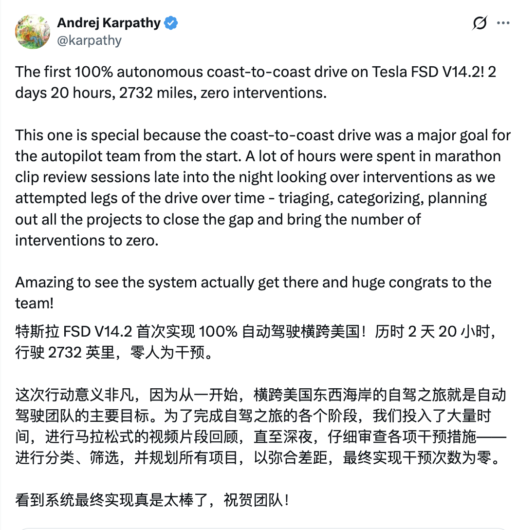 “三年又三年,三年又三年”,Andrej Karpathy都离职了,十年已经过去了,现在,马斯克当年的雄心终于让一位用户给实现了。