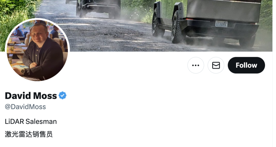 根据他在X上的自我介绍,David其实是一位激光雷达销售。