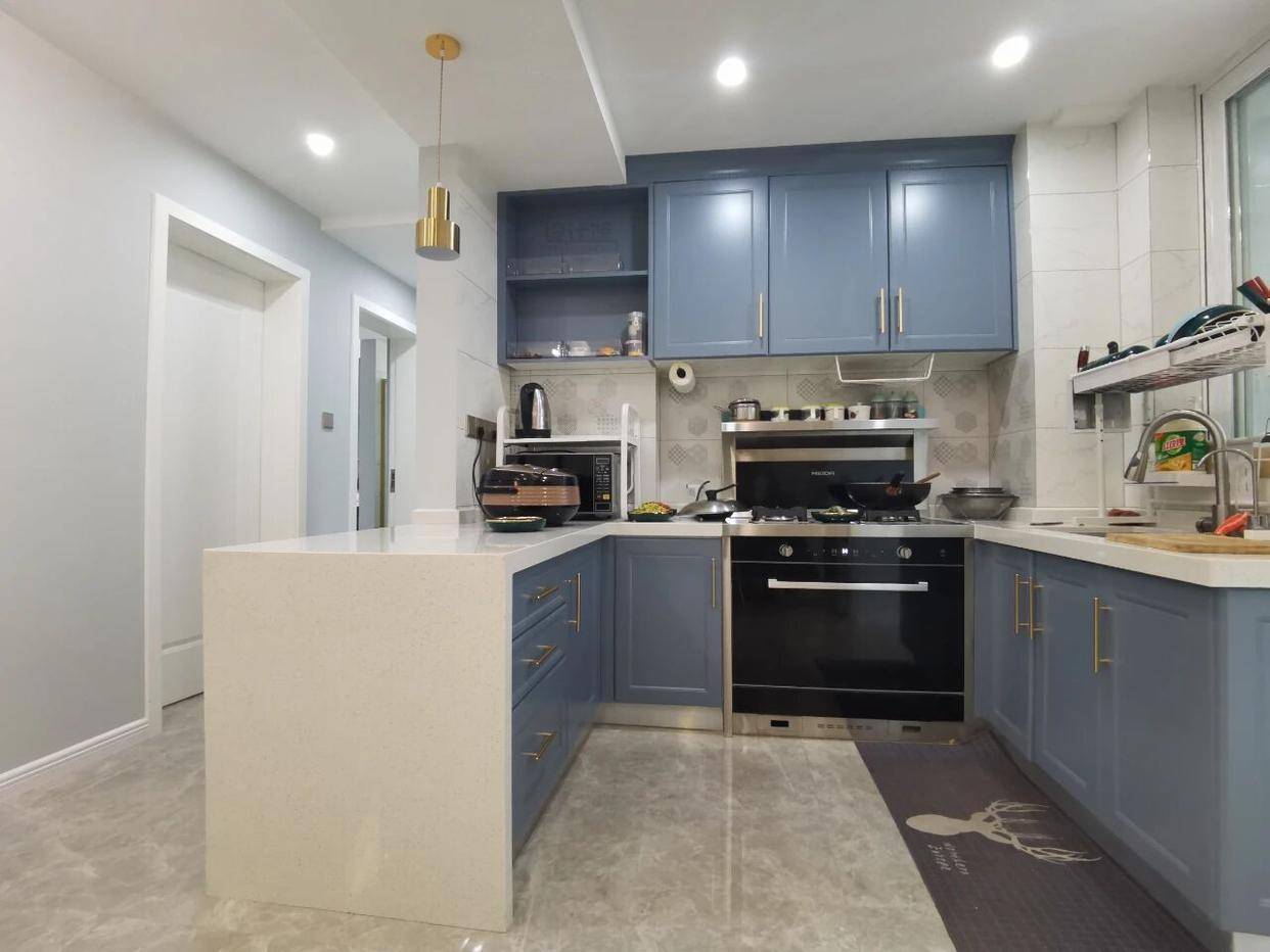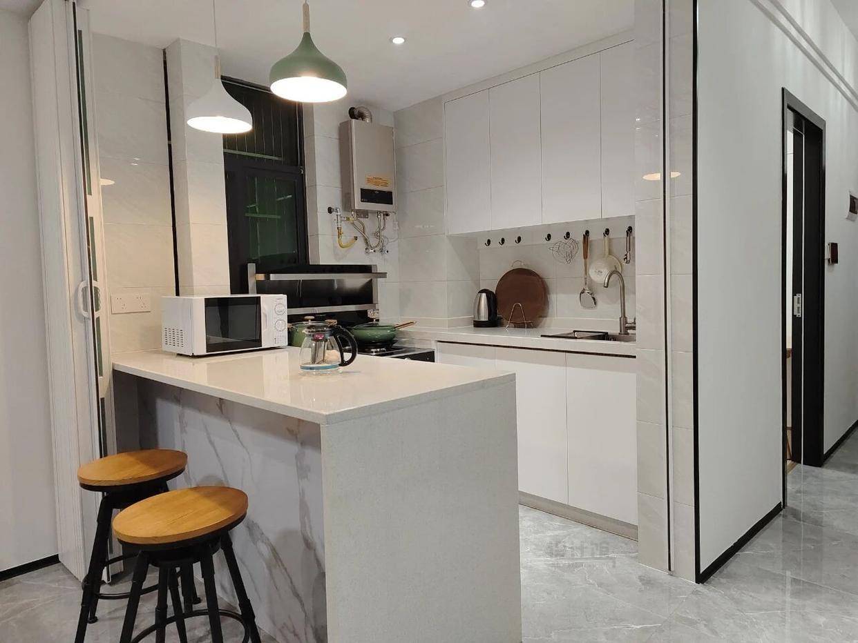 提及中岛台,很多家庭的第一反应是“大户型专属”,直接将其排除在外。直到我亲自为一套60平米的小户型装上了中岛台,才发现它的实用之处:远超想象!它集了操作台、餐台、收纳柜等功能于一体,是空间利用效率翻倍的设计。