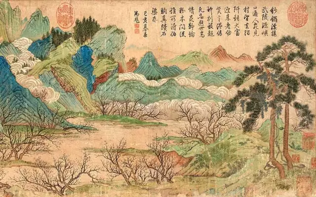青绿山水画,那可是中国画里的“颜值担当”!隋朝展子虔的《游春图》,就像春天的使者,青山绿水间,桃花点点,仿佛能闻到花香,让人忍不住想跟着画中人一起去踏青。