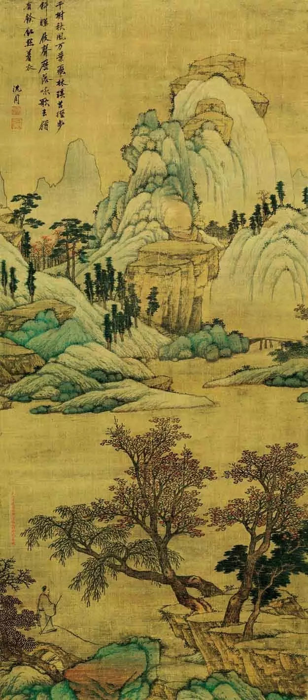 ▲ 明-沈周-青绿山水轴(局部)