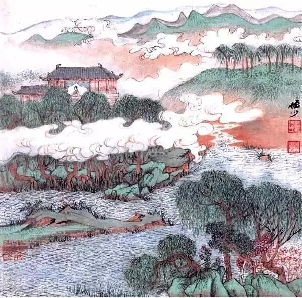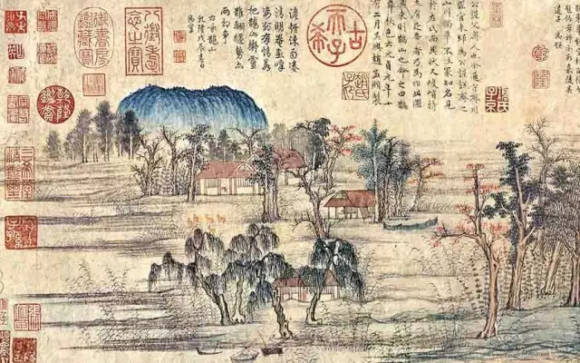 元朝赵孟頫的《鹊华秋色图》,则是秋天的温柔写照。青山绿水间,点缀着几棵红叶树,就像秋天里的一抹暖阳,让人心里暖洋洋的。