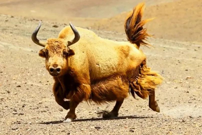 西藏的“黄金兽”其实是一种罕见的金丝野牦牛,它们是西藏特有的物种,首次发现于1988年,它们身形巨大,是名副其实的“高原霸主”。